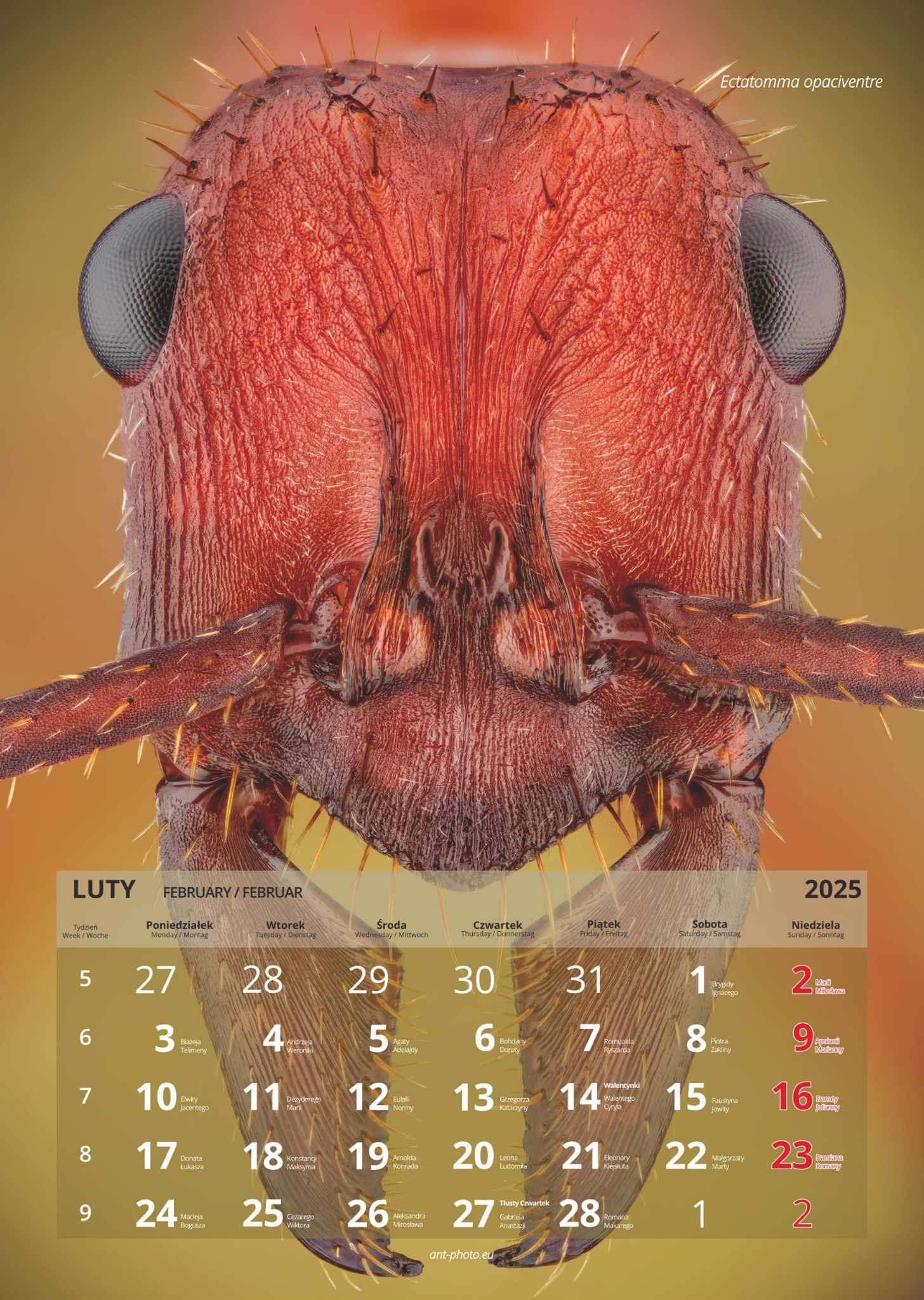 Znajdziesz w nim oryginalne i niesamowite zdjęcia różnych gatunków na cały rok. Każdy miesiąc dedykowany jest innej mrówce.